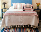 Juego de Cama Artesanal de algodón. Colcha + 2 Fundas + 2 Cubiertas para cojín cuadrado.