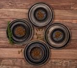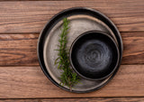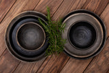 Vajilla de Barro Manzano, sin plomo. Todo natural. Hecho utilizando las técnicas ancestrales, en horno de leña y con una proceso llamado reducción para crear un color ahumado.
