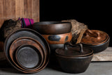 Esta colección para tu cocina en su elaboración solo cuenta con los materiales descritos: Tierra, Agua, Aire y quemado en leña a baja temperatura, 600-800 grados C. La energía, la esencia que te provoca esta colección es evocarte al fuego de las cocinas ancestrales.