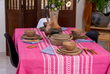 Manteles hechos a mano en telar de pedal siguiendo las tradiciones ancestrales. Color que representan las emociones de Oaxaca. Disponibles en varios tamaños para adaptarse a tus necesidades.